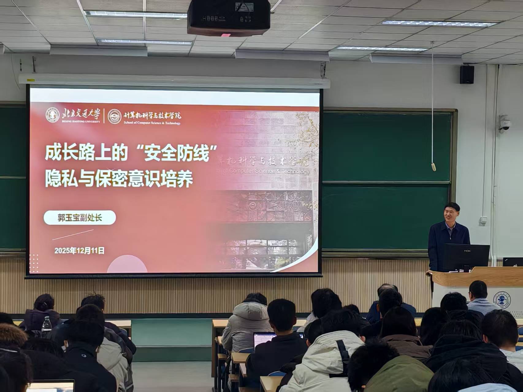 科研保密是科研工作的生命线,容不得丝毫松懈。科研院先进处副处长郭玉宝以“成长路上的“安全防线”--隐私与保密意识培养”为主题,结合近年来科研保密工作的新形势、新要求,从国际形势、保密法律法规、科研注意事项、公民保密责任义务及常见保密风险点等方面进行了系统讲解,并模拟了学生科研工作中有可能发生失泄密的场景,深入浅出地阐明了科研保密工作的重要性,引导研究生树立“保密工作无小事,防微杜渐记心间”的意识,掌握在实验数据管理、成果发表、对外交流等环节的保密技巧,切实履行公民保守国家秘密的义务,切实守护科研安全。