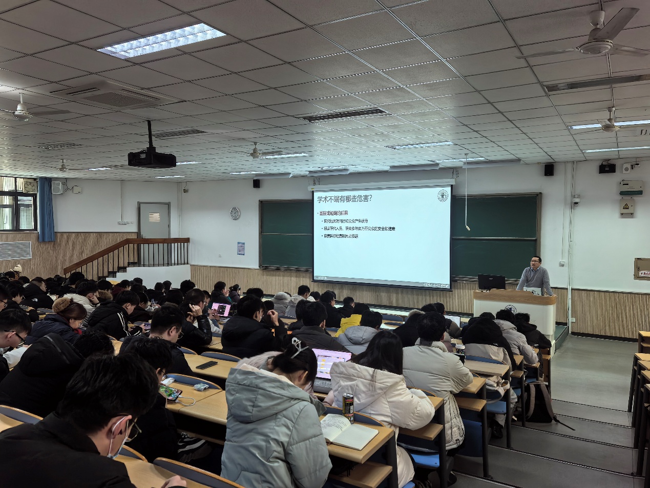 学术道德是科研工作的灵魂,是研究生成长成才的重要基石。学院副院长魏云超对科研学术道德的核心要求进行了深入宣讲。从论文写作中的引用规范、数据真实性保障,到科研项目开展中的诚信准则,领导强调,学术诚信是研究生的立身之本,必须坚守“求真务实、严谨治学”的学术品格,坚决抵制抄袭、篡改数据、一稿多投等学术不端行为。同时,鼓励研究生树立正确的学术价值观,以诚信科研助力学术创新,推动科研事业健康发展。